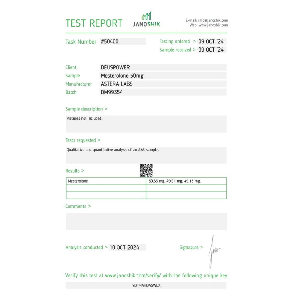 Specification MESTEROLONE ORAL STEROID IN TABLETS Astera Labs